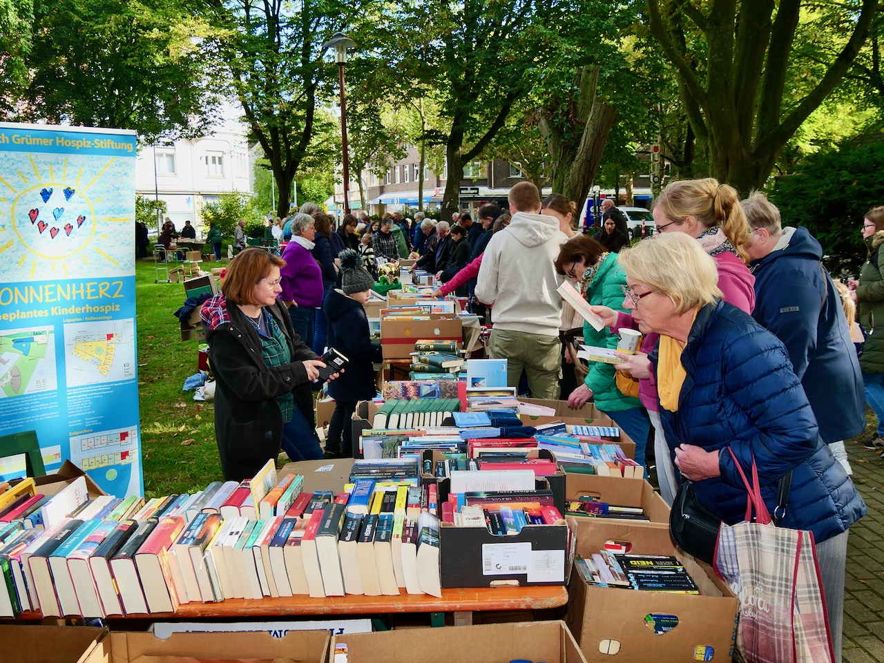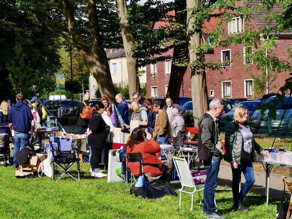 Am vergangenen Samstag verwandelte sich der Mengeder Amtshauspark erneut in ein Paradies für Bücherfreunde: Der inzwischen 18. Mengeder Büchermarkt zog bei zwischenzeitlich warmem Sonnenschein zahlreiche Besucher*innen aus dem Stadtbezirk und darüber hinaus an.