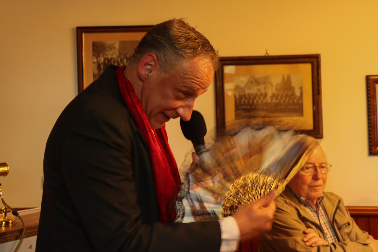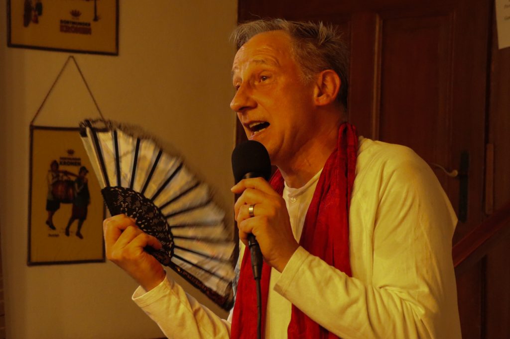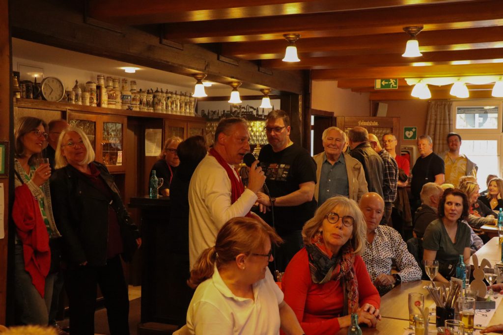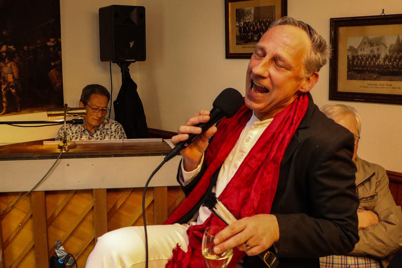 Zu der April-Veranstaltung „Auf`n Pils“ hatte der Heimatverein Mengede für das halbstündige WarmUp vor Beginn der offiziellen Öffnungszeit den Neu-Mengeder und Travestie-Künstler Jörg Zadow alias Sophie White und den Pianisten Martin Heider eingeladen.