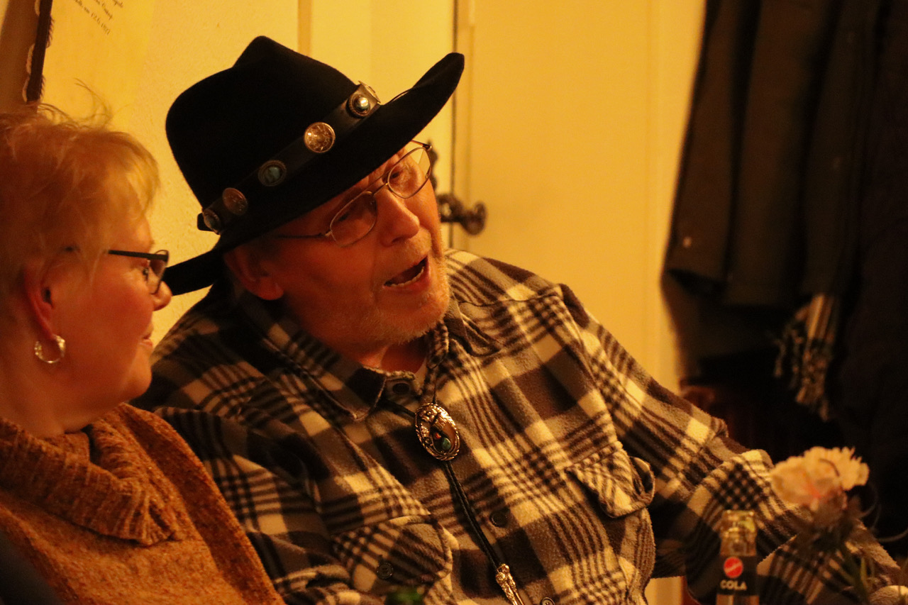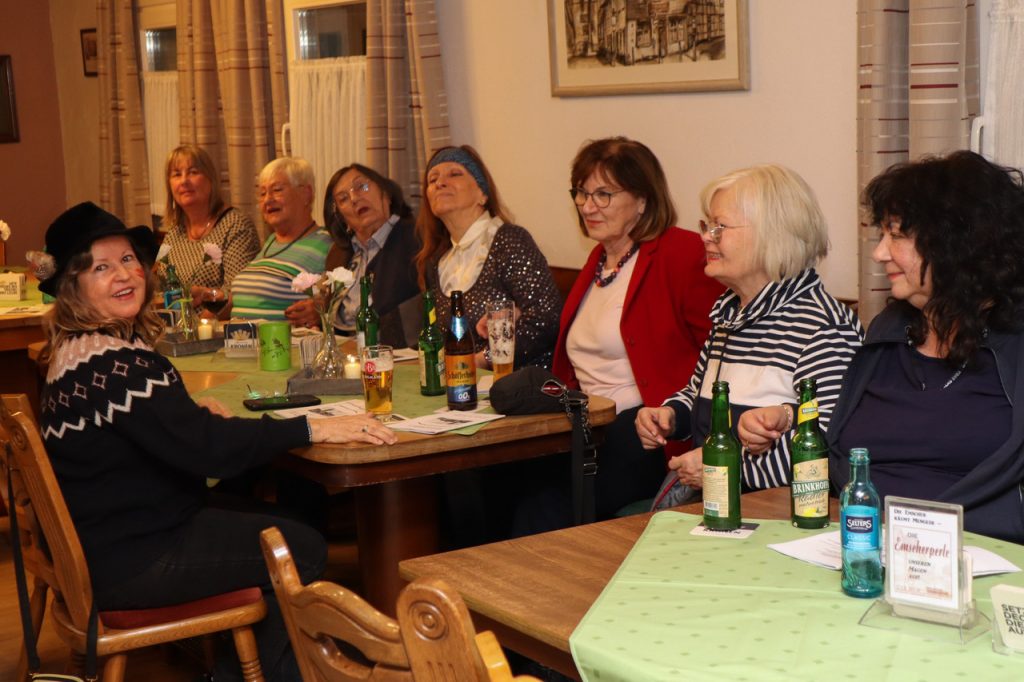 Angesichts der guten Stimmung gab es auch Beiträge aus dem Publikum. Ein Gast, der zum ersten Mal dabei war, erinnerte an den unvergessenen Heinz Erhardt mit dem Lied „Was wär das Leben ohne Skat“. Er konnte auch dessen Gedichte erzählen, und passend dazu erklang aus den Lautsprechern „Linkes Auge blau, rechtes Auge blau“. Angelika aus Lünen bat darum, ein paar „schlüpfrige“ Witze zu erzählen zu dürfen. Wobei beim Verstehen der Pointen diejenigen die besten Chancen hatten, die ein abgeschlossenes Anatomiestudium hinter sich gebracht hatten. Auch als zwischenzeitlich das Fassbier ausgegangen war, trübte das nicht die Feierlaune, denn es war ja noch reichlich Flaschenbier da. Mit „So ein Tag so wunderschön wie heute“ in der Originalversion von Freddy Quinn klang die gut zwei Stunden dauernde Veranstaltung aus, einer Feststellung, der sich die Gäste des Abends gerne anschlossen.