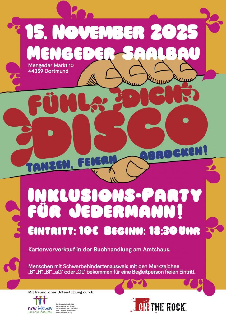 Ob jung oder alt, mit oder ohne Behinderung – bei dieser Party steht das Miteinander im Mittelpunkt. Ab 18:30 Uhr öffnen sich die Türen, und DJ Benjamin Luig sorgt mit einem abwechslungsreichen Mix aus Disco-Klassikern und aktuellen Partyhits für beste Stimmung.
