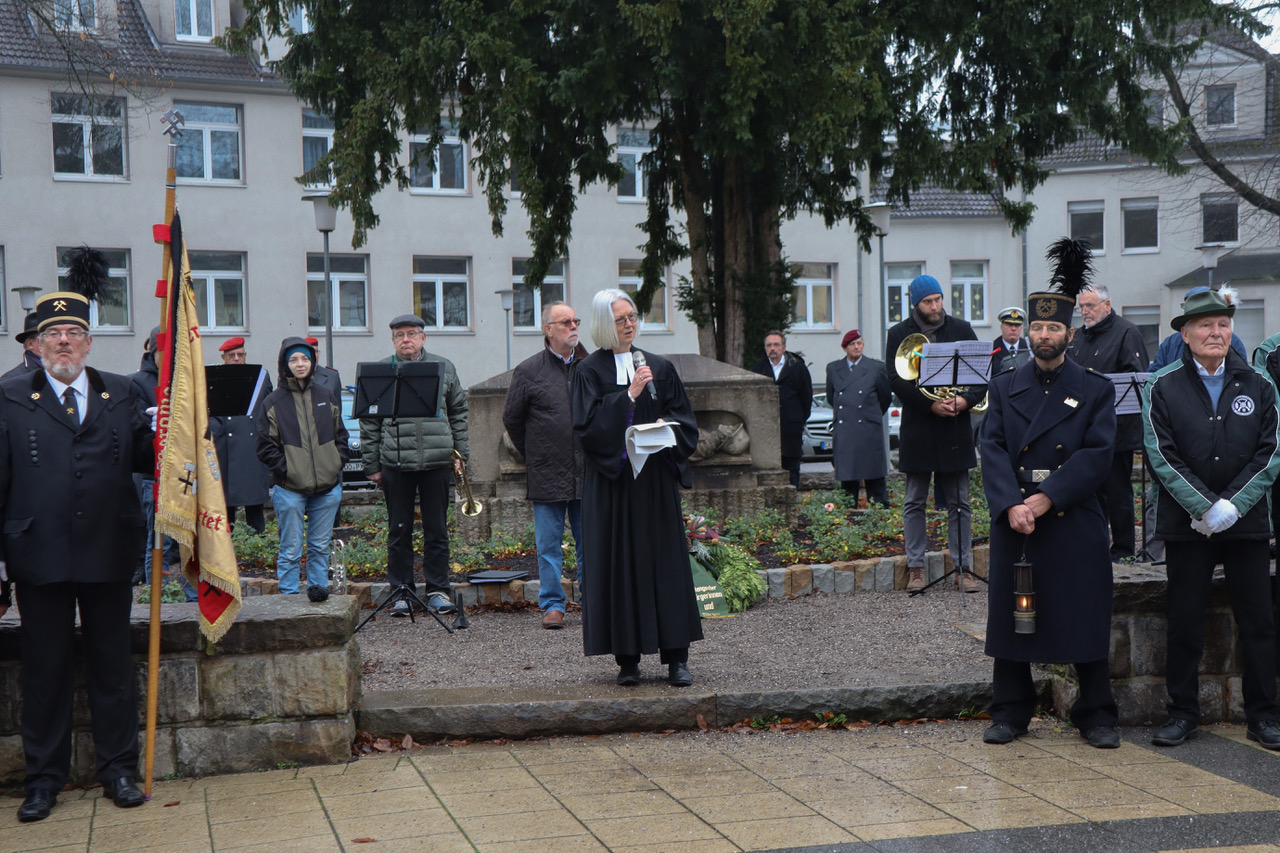 Die Kranzniederlegung zum Volkstrauertag fand am Ehrenmal am Platz der Begegnung zwischen Adalmund- und Jonathanstraße statt.