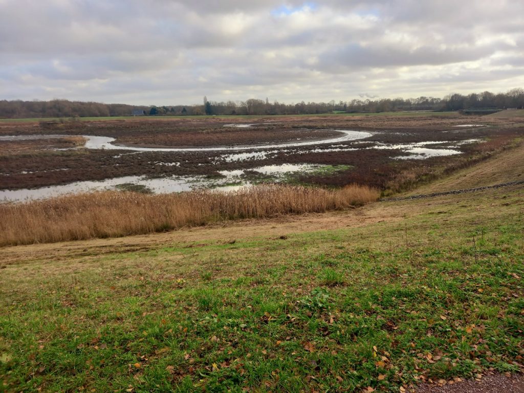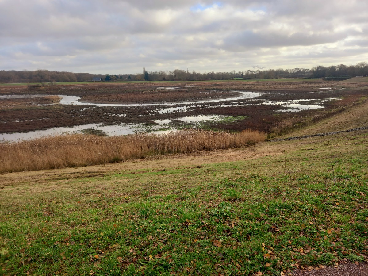 Nach einer ausgiebigen Rast gehen wir weiter zu den neuen Emscherauen und zum Deusenberg, machen einen Schlenker in Deusen, und gehen dann am Kanal entlang zurück zur Deusen-Kirche. Mit der Linie 475 fahren wir ab Deusener Wiese zurück nach Mengede.