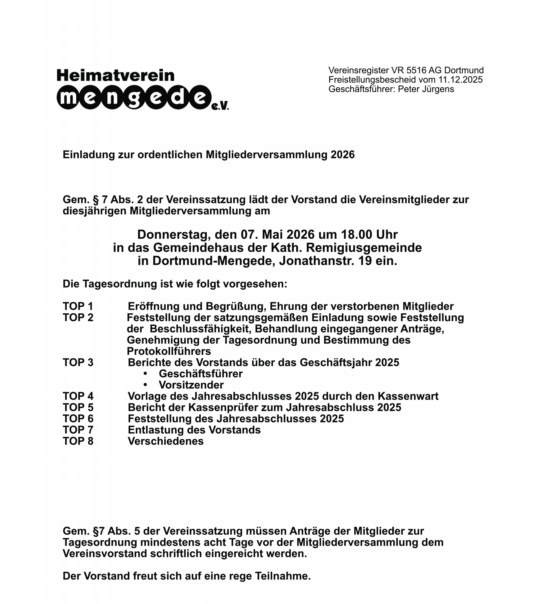 Mitgliederversammlung 2026